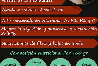 Además es un vegetal con bajo contenido en sodio solo 3mg por cada cien gramos de producto.