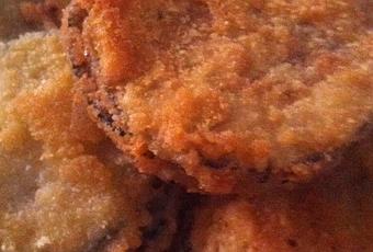 - Reboza las berenjenas en huevo, harina y pan rallado. Fríelas en abundante aceite caliente hasta que estén doradas.