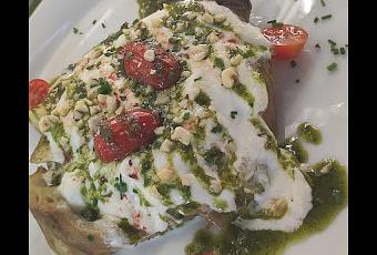 Servir las berenjenas con un poco de burrata por encima, las avellanas tostadas y un poco de salsa pesto. ¡Y listas para disfrutar!