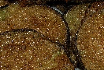 En la imagen de abajo, las berenjenas de arriba están solo pasadas por la harina y a la sartén. Las berenjenas de abajo están hechas según esta receta.