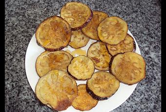 Ingredientes:1 berenjena Miel común de abejaAceite de olivaHarina