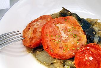 ¡¡¡Hoy es nuestro primer cumpleaños de blogueros!!!Hace ya un año que empezamos a publicar recetas y la de hoy es la número 135. Nuestra primera receta fueron estas maravillosas berenjenas rellenas, que la verdad, viéndolas hoy, la foto no les hace justicia...Hemos ganado un montón de seguidores y estamos super contentos de poder compartir con vosotros nuestras cositas.Después de pasar una semana genial viajando y alimentándonos de bocadillos y ensaladas preparadas (buenísimos, nos sabían a gloria, pero hemos acabado un poco hasta el moño) al llegar a casa queríamos verduras, carne, guisos de nuestras madres. Así que ya que estábamos tan cerca del aniversario nuestra primera receta debían de ser berenjenas, con el toque provenzal de los tomates fritos. Por cierto, hemos comprado un libro de recetas de la Provenza francesa, así que este verano, además de dar mucho la brasa a nuestros amigos con lo bonita que es Francia, que si en Arlés patatín y en Aviñón patatán, vamos a cocinar los platos típicos de allí...promete ser un verano feliz.Ingredientes para 4 personas:-4 berenjenas rayadas-1 cebolla-1 diente de ajo-1 poco de perejil fresco-1/2 cucharadita de comino-4 cucharadas de sésamo-8 cucharadas de aceite de girasol-2 tomates maduros-un poco de harina-aceite y sal1-Ponemos el aceite de girasol y el sésamo en el vaso de la batidora y lo molemos lo más fino que podamos.Lo colamos y reservamos la pasta fina resultante. Las cascarillas las tiramos.2-Cortamos las berenjenas y la cebolla, la doramos en la sartén. 3-En un mortero machacamos el ajo con sal, comino, perejil y dos cucharadas del aceite de sésamo. Lo añadimos a las berenjenas y tapamos la olla. Dejamos que se cuezan un poco y retiramos del fuego.4-Cortamos los tomates en rodajas gruesas, las pasamos por harina y las freímos. Escurrimos el aceite en papel secante y le añadimos unos granos de sal.