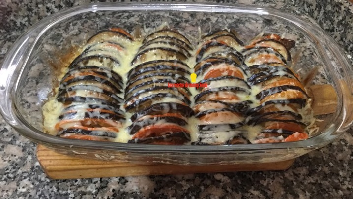 _ 2 berenjenas_ 2 tomates_ Sal_ Aceite de oliva_ Queso rallado( yo he puesto 4 quesos)