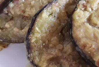 - Cortamos las berenjenas en rodajas y las freímos ligeramente en una sartén y reservamos.