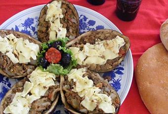 Precalienta el horno a 180º, engrasa ligeramente una bandeja de horno y rellena las berenjenas con la preparación anterior.