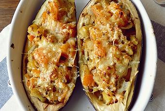 El primer plato que he hecho basándome en el libro han sido estas berenjenas rellenas al horno. Como ya sabréis las berenjenas es una de mis verduras favoritas así que cuando las vi, no me pude resistir. Os dejo con la receta.
