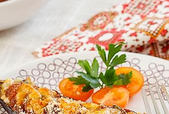 Rellenar las barquitas de las berenjenas con esta farsa. Espolvorear con el queso rallado y gratinar 5 minutos.