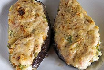 relleno y gratinándola con una delicada besamel de atún. Ahí va.