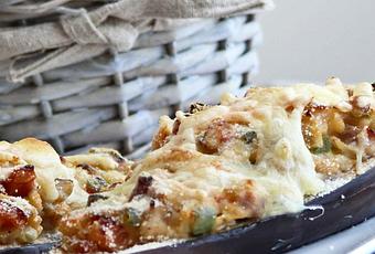 - Cocer la berenjena en el horno, hay quien hace cortes sobre la carne de la berenjena, formando cuadrados y añade un chorrito de aceite, metiendo luego las berenjenas en el horno. De esta forma, la carne ya sale con algo de cocción y posteriormente se utiliza para preparar el relleno.