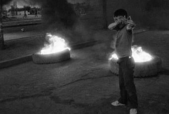 Niño en las barricadas en Villa Francia, Santiago (1985)