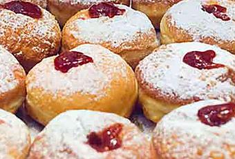 Rellenas (foto superior): Podemos poner un poco de Nocilla o Nutella (bien endurecida unas horas antes en la nevera) en el centro de cada bollito y después freírlos. También podemos freír las berlinesas sin rellenar y, cuando enfríen, sumergirlas hasta la mitad en chocolate fundido, espolvorear fideos de chocolate o almendras picadas... y luego dejar enfriar la cobertura de chocolate.