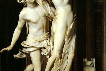 El instante en el que Dafne es alcanzada por Apolo y comienza a transformarse en dura corteza y rama de laurel, es recogido por Bernini en el grupo escultórico llamado Apolo y Dafne (1622-1625). Un grupo escultórico que junto a otros tres grupos, fueron encargados por el Cardenal Scipione Borghese.
