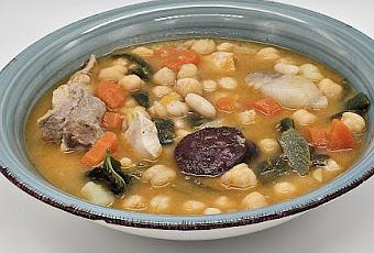 Podríamos decir que es una versión del cocido con verduras de temporada y carnes, lo que aquí llamamos "pringá!.