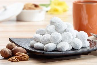 En caso de usar nuez entera se procesa o licua y guardamos aparte. Se baten en un bold o batidora la mantequilla y 1/2 taza de azúcar glass hasta que quede una masa homogenea, enseguida echamos 1 taza de harina y seguimos batiendo, Después agregamos la vainilla y la sal, agregamos otra taza de harina y la taza de nuez y batimos hasta incorporar todo por completo. se refrigera 1 hora, Para terminar hacemos las bolitas o la forma de su preferencia y se hornean por 15 a 20 min o cuando apenas empiecen a verse doradas.