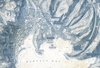 El canal de Serkonos divide la ciudad en una serie de distritos. La costa nos ofrece una gran panorámica de brillantes aguas que se extienden hacia un inmaculado horizonte y atraen a artistas y fotógrafos de todo el imperio, mientras que desde las cumbres de Batista puede disfrutarse de la brisa de montaña y de unas vistas impresionantes de la bahía.