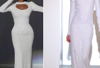 Beyonce está deslumbrante con un ceñido vestido largo con incrustaciones de pedrería de Marc Bouwer, Pre-Fall, 2012, que perfila su curvilínea figura.