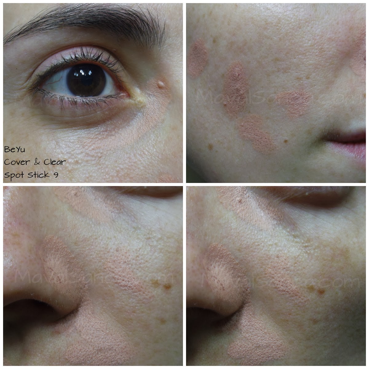 In these pictures you can see effect BeYu Cover & Clear Spot Stick Long Lasting concealer effect once is blended.