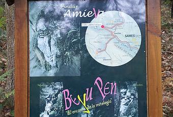 Se trata de una ruta de senderismo que discurre a lo largo del arroyo (El Regatu) por un bosque de castaños en el que el caminante se encontrará con algunos de los personajes más emblemáticos de la mitología asturiana (el Ñuberu, Busgosu, el Diañu Burlón, Bruxa, la Guaxa, Llavandera,....) recreados en rocas y troncos y con la ayuda del hombre, en concreto la del artista gijonés, Julián Bravo.