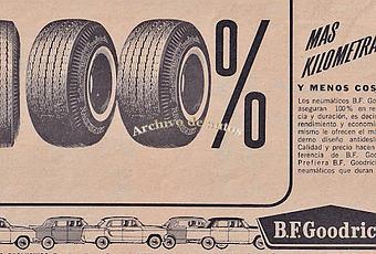 La marca de neumático BFGoodrich se comercializó en el mercado argentino en el año 1966. Una vieja publicidad nos da testimonio de la venta de neumáticos de la marca estadounidense B.F. Goodrich, tal como se la conocía en esa época.