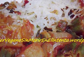 Et voilà! Muy improvisado, nada que ver con las recetas originales, pero está buenísimo. Yo lo he servido con queso vegano Divina teresa “Jupiter” rallado por encima.
