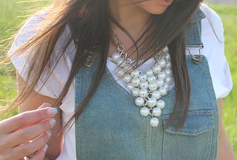 Y después de este pequeño inciso vamos con el look, a estas alturas ya todos sabemos que los petos vaqueros vienen con fuerza esta temporada. Seguro que todos los que nacisteis en los ochenta como yo os tocó lucir alguno a lo largo de vuestra infancia. Yo recuerdo uno de campana amarillo palo, bastante horroroso y otro que era prácticamente igual al que llevo hoy. Nada más supe del retorno de esta tendencia me entraron ganas de hacerme con un peto, tenía claro que debía ser con falda ya que me parece más femenino y ponible en mí caso. Una tarde me arme de paciencia y descubrí esta joyita en Choies. Cómo no me aguantaba a enseñarlo idee un look de entretiempo que bien podría ser uno de esos "working outfits" con estilo y saliéndose de lo habitual. Decidí ponerle camiseta básica blanca, blazer blanco, mi precioso collar de perlas y mis nuevos y preferidos botines. ¿Qué os parece? Peto vaquero / denim bib Choies Botines / booties Carolina Herrera Collar / necklace Ary Bisutería Blazer Mango ss12 Gafas / sunglasses Firmoo Bolso / bag Purificación García