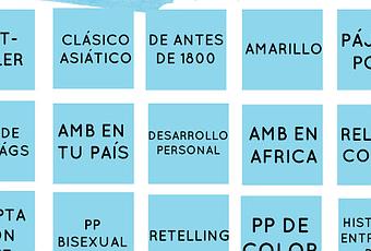 Este año, hemos decidido traeros un bingo más original (y más sano que el bingomocho que solemos jugar en la universidad, jeje) Biblio Bingo es un challenge compuesto por veinte pequeños retos. A lo largo del año podéis ir completando estos retos hasta que hayáis completado todo el cartón. El cartón de este año hemos intentado hacerlo lo más variado posible para que haya retos relacionados con género, autor, páginas, portada... ¡De todo un poco!