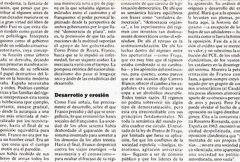 Última entrega de la serie dedicada a la bibliografía sobre Franco en los diez años siguientes a su fallecimiento. Se trata de la reseña de Raymond Carr sobre el libro Franco, de Juan Pablo Fusi (Ediciones El País, Madrid, 1975). Oublicada en El País, 21 de noviembre de 1985.
