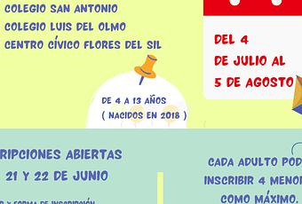Así, el periodo de inscripción comienza el próximo lunes, día 20 y concluye el miércoles 22 de junio, y se realizará en tres lugares distintos: el Centro de Día El Plantío (de 8:30 a 11:00 horas o en el teléfono 987 088 926), en el local 6 de los bajos del Estadio el Toralín (de 9:30 a 12.30 horas, o en los teléfonos 987 426 777-987403 217) y en el Centro Cívico de Flores del Sil (de 9:30 a 12:30 horas, o en el teléfono 987 424 157), dependiendo de la ubicación donde van a participar los niños y las niñas.