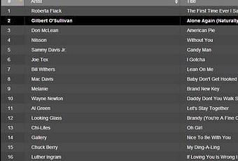 Una vez que elegimos el año, nos muestra la lista de los 100 temas más populares de ese año con la posición, el artista y el título del tema. La lista se reproduce automáticamente a partir del tema que elegimos escuchar al principio.