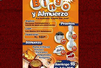 Señor José Antonio Benito Nos da mucha alegría poder saludarlo. Como le comentaba, estamos realizando un Bingo Pro Capilla "San José" para el día 18 del presente. Por lo cual le rogamos su colaboración, en hacer publicidad de nuestra actividad, ya que es para continuar con los acabados de nuestra Capilla "San José". Le agradecemos de todo corazón, y rogamos al Señor que lo siga bendiciendo en la labor que Ud. desempeña Atentamente Hnas Contemplativas del Buen Pastor.