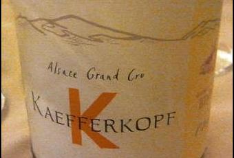 El Kaefferkopf 2008 Alsace Gran Cru está elaborado por Domaine Audrey et Christian Binner, con un coupage de tres uvas distintas, riesling, gewürztraminer y muscat, en la localidad de Ammerschwihr, y perteneciente a la AOC Alsace ; la uva procede el Kaefferkopf Gran Cru de la misma localidad francesa, con una muy especial climatología, ya que esta parte de Alsacia , es la zona de Francia con menos precipitaciones de lluvia, debido a la barrera que componen las montañas de Vosgos. La familia Binner cuenta en su web que llevan elaborando vino desde 1770, y en la actualidad cultivan y elaboran vino exclusivamente, desde sus 11 hectareas de viñedo de un modo artesanal y ecológico. El vino presenta un vivo color amarillo dorado, brillante y llamativo, recuerdos a flores blancas, dulzón, algo ligero en boca pero con buena intensidad y una excelente acidez, notas cítricas y muy buen final en el que se nota un poco la madera ; muy recomendable y complejo.
