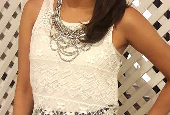 Esta falda de rayas es todo un clásico. Para combinarlo utilicé una blusa de encaje en tonalidad blanca, y para darle más resalte al outfit, le coloqué mi nuevo collar favorito (Ya se lo había mostrado en un look más casual)