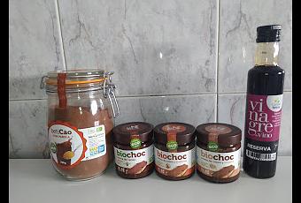 Al evento nos enviaron un lote de sus productos: cremas de cacao saludables, hechas a base de aceite de oliva; un bote de beticao, un cacao soluble edulcorado con panela y una botellita de vinagre de vino con sirope de frutos rojos.