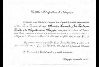 ESPINOZA DE LA BORDA, Álvaro M.: In Te, Domine speravi . Monseñor Leonardo José Rodríguez Ballón y la Arquidiócesis de Arequipa. Cabildo Metropolitano de Arequipa, Arequipa, 2011, 314 pp