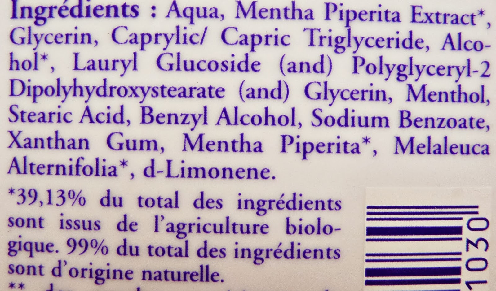 * Negativa:Por decir algo, el olor no es el típico. Yo estoy acostumbrada a los olores florares (son mis preferidos), así que me chocó muchísimo encontrarme con un desodorante con olor a cardamomo y a pachuli. De hecho, no me imaginaba a qué podía oler esa combinación. Sin embargo, no me ha costado nada hacerme a él y me encanta el olor :-) Composición:Procede de la agricultura biológica: -- El 98,9% del total de los ingredientes es de origen natural.