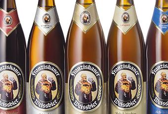 Franziskaner Hefe-Weissbier (Naturtrüb). La mas consumida, 5% de ABV. Es turbia, ya que no esta filtrada. Tiene una espuma duradera. Con aroma y sabor a melocotón/albaricoque y un final largo.