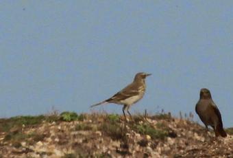 Estaba algo lejos de donde nos encontrábamos y yo fui incapaz de sacarle fotos, por fortuna Anabel sí pudo retratarlo y me ha enviado éstas que estoy utilizando en la entrada, cosa que le agradezco enormemente. El bisbita alpino es una especie frecuente en Asturias por encima de los 700 m de altitud más o menos, en especial en zonas abiertas de roquedos y pastizales donde es el paseriforme más abundante. Con la llegada del otoño baja de altitud.