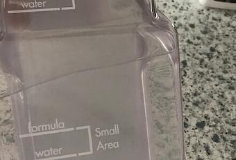El depósito tiene dos marcas, dependiendo de si vamos a limpiar una superficie pequeña o un área más grande. Primero echamos agua caliente y después rellenamos con la fórmula limpiadora hasta la marca.