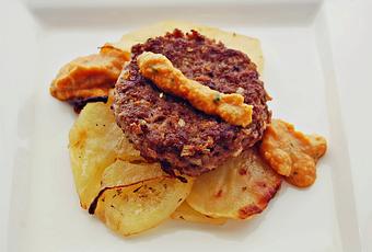 Para la salsa de tomate provenzal se rehoga la cebolla y el ajo en brounoise, fuera del fuego se pone un poco de pimentón. Se añade el tomate concasé (en dados), zanahoria en brounoise (dados pequeños), laurel, sal y se deja cocer a fuego lento durante media hora. Se tritura, se pasa por el chino y se rectifica de sal y azúcar (para controlar la acidez). Se le pone perejil picado. Para las patatas panaderas, se mezclan patatas cortadas en rodajas con cebolla en juliana, se sazona y se saltean unos minutos. Se colocan en placa rustidera (una bandeja de horno o recipiente de cristal), se riega con el vino y se meten al horno hasta que estén tiernas. Se espolvorea con perejil picado.