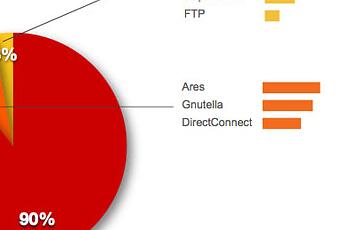 Según el cuadro, BitTorrent supera ampliamente a los gestores de descarga P2P más populares como Ares, la red Gnutella y hasta los mismísimos Rapidshare e ebay.