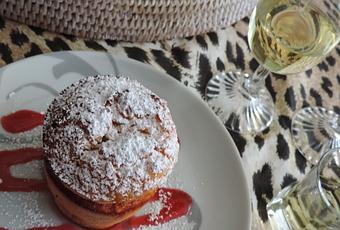Este postre es una mezcla entre una magdalena y un bizcocho, al hacerlo en moldes de magdalenas quedan ya en raciones individuales . La decoración os la dejo a vuestra elección, Yo he usado sirope de fresa!!