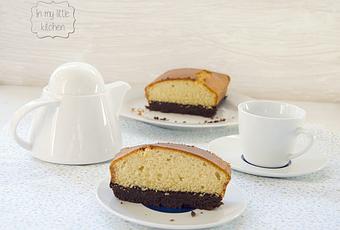 Este bizcocho lo vi en Pinterest (donde si no), y me recordó a esos bizcochos que venden en paquetes individuales que son un bizcocho normal al que han bañado la parte de abajo en chocolate, pero ¡¡ay queridos!!, es que este además de ser casero...¡¡la parte de abajo es de brownie!!, ¿qué más se puede pedir?. Una auténtica delicia, os lo puede asegurar.