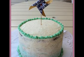 Hola!!!! Esta tarta fue para celebrar el nacimiento de Álex!! Es un bizcocho buttermilk de piña, bañado con almíbar de baileys, relleno con mermelada de ciruela y ganache de chocolate blanco, y cubierto con merengue suizo de coco. Vaya que quería que pareciese piña colada!!!