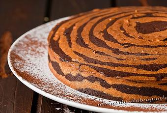 - Ir echando las dos masas en el molde alternándolas para lograr el efecto cebra. Para ello, comenzar SIEMPRE desde el centro del molde y tener cuidado de no mover éste, para que las masas no se mezclen.