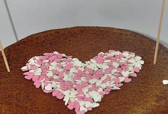Lo hemos decorado pensando en San Valentín, como veis, nada complicado. Con unos palitos de brocheta hemos hecho unos banderines con forma de corazón, y con unos sprinkles de corazón hemos dado forma, como no, a otro corazón. ¡Triunfaréis seguro!