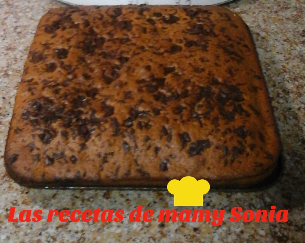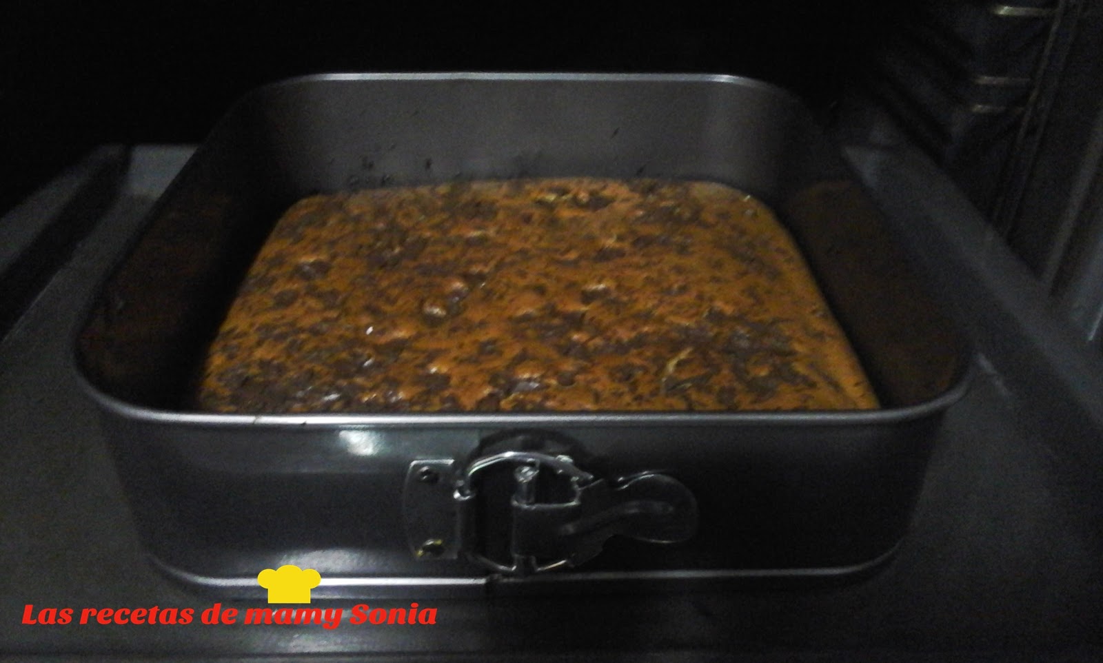 Vertemos la mezcla y le agregamos el chocolate troceado en pequeños trocitos