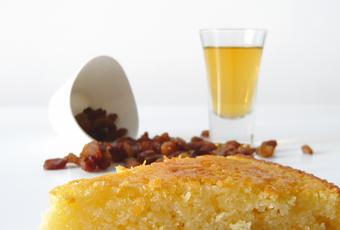 Un café acompañado por un bizcocho muy esponjoso y con un punto de humedad fantástico, con un sabor a limón, pasas, ron y mantequilla que quita el "sentío".