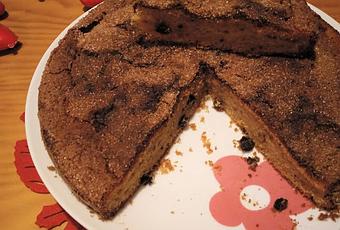 Verter en un molde redondo, previamente engrasado y enharinado, y cubrir la superficie con una mezcla hecha con 2 cucharadas de azúcar blanca, 2 cucharadas de azúcar moreno y 1 cucharada de canela. Hornear a 180 ºC durante 45 minutos (comprobar con un palillo que sale limpio). Dejar enfriar. ¡Divino!