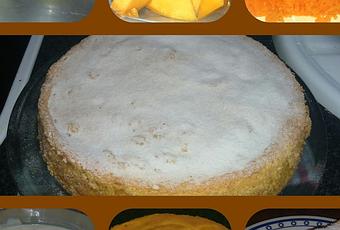 Engrasamos un molde con mantequilla y un poquito de harina y volcamos la masa al molde y metemos en el horno que previamente tenemos caliente a 180º el tiempo de cocción aproximadamente es de 40 minutos, pinchamos y cuando el cuchillo salga limpio, nuestro bizcocho esta listo. Dejamos enfriar y decoramos con azúcar glass.