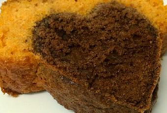 La idea es de las chicas de Kanela y Limón, que el año pasado me dejaron con ganas de hacerlo, así que en cuanto me vi con la calabaza en mis manos me dije... "De este año no pasa". Fue para Halloween, con un cortador en forma de calabaza. Pero no quedé contenta con el resultado. No por el sabor, que quedó riquísimo, sino por el dibujo, que se perdió al hornearlo...Así que me pareció que San Valentín era na buena ocasión para repetir... Sobre todo, porque me había quedado puré de calabaza para otro bizcocho, y estaba esperándome en el congelador...En primer lugar, deciros que uno de los ingredientes es bizcocho de chocolate previamente hecho. Podéis hacerlo en casa o podéis comprarlo hecho si no os da tiempo de hacerlo antes (yo opté por esta opción).Además, necesitaréis un cortador bonito para sacar el dibujo de dentro del bizcocho. Dicho esto, necesitaréis:- bizcocho de chocolate- cortador de galletas- 100 gr. puré de calabaza- 100 gr. mantequilla- 100 gr. azúcar- 3 huevos- 150 gr. harina- 10 gr. levadura química (tipo Royal)- colorante naranja (opcional)Primero hacemos el puré de calabaza. He troceado la calabaza y con una pizca de sal la he puesto 4 minutos en el microondas a máxima potencia. Con 150 gr. de calabaza cruda me han salido unos 100 gr. de puré.